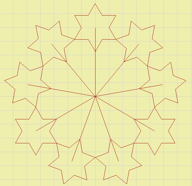 La figure avec 9 flocons de côté 10 s'obtient maintenant avec une seule ligne de programme : FleurFlocon :10 :9 CT