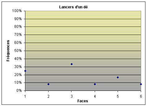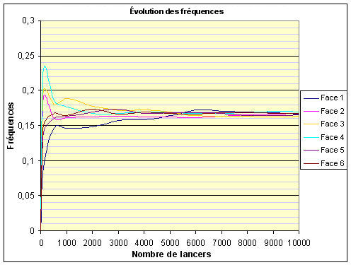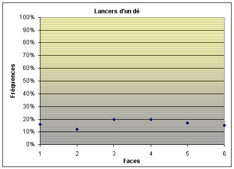 Et en dessous un graphique donnant les fréquences de chaque face se remplit automatiquement.