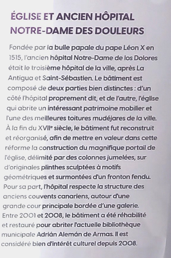 Iglesia NuestraSenora de la Conception On remarque le campanile en roche volcanique noire de cette église qui fut construite en 1511. A l'intérieur le plafond est en bois ouvragé marqueté et peint dans le style canarien.