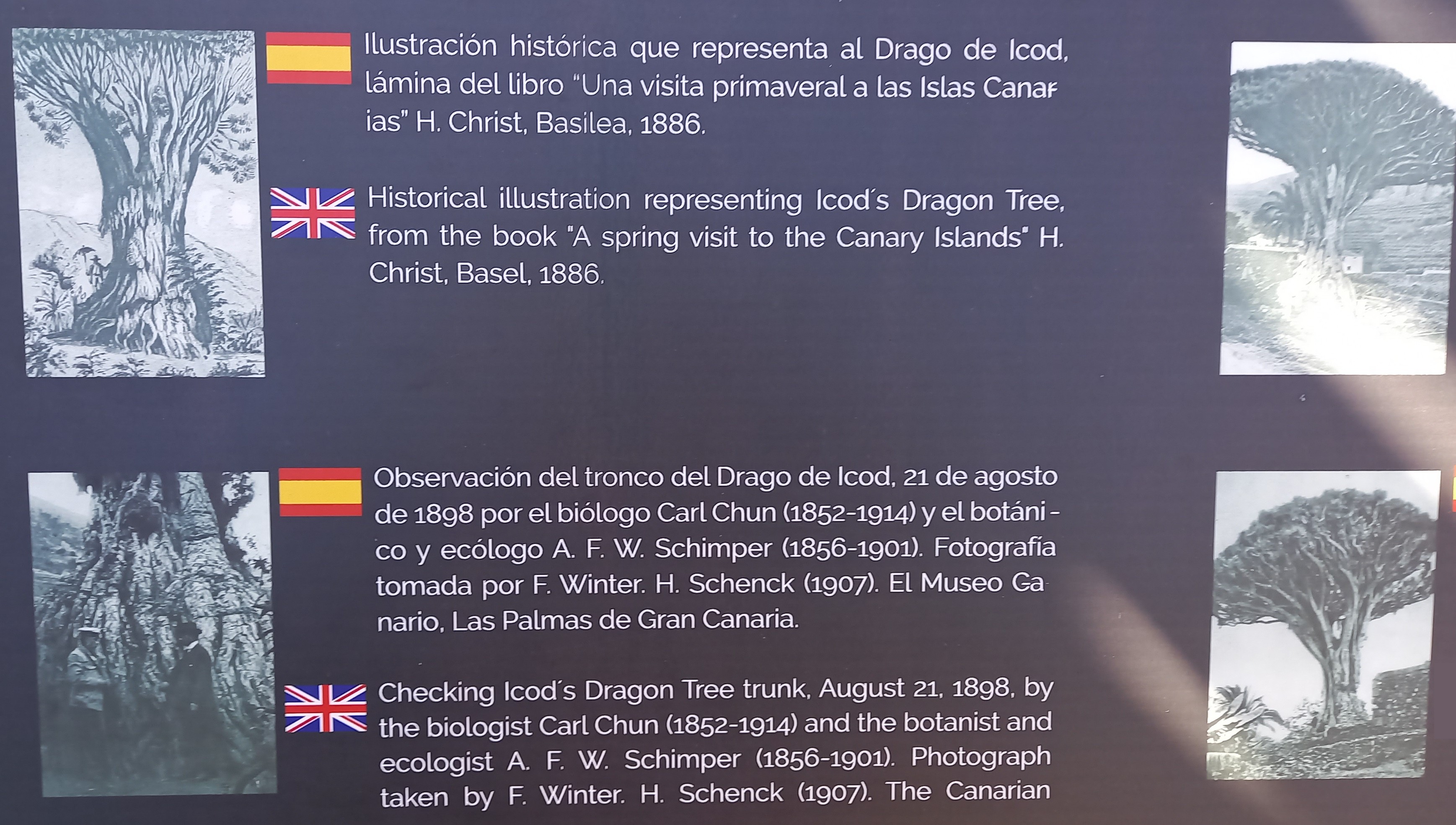 Parque del DragoDel Drago, cet arbre mythique agé d'environ 900 ans avec ses 20 m de haut et ses 15 m de circonférence, avec sa sève rouge sang (le fameux sang du dragon) mérite bien que l'on s'en approche pour observer ses racines labyrinthiques. Le parc construit autour de l'arbre offre une végétation typiquement canarienne et une promenade vallonnée qui multiplie les points de vue sur le Teide et les vallées alentour.