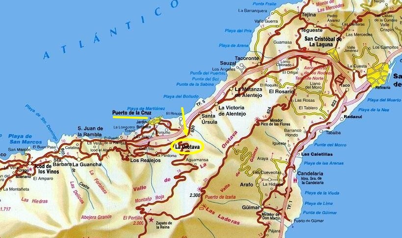 Orotava est pratiquement au centre du Nord de l'ïle, à quelques kilomètres de Puerto de la Cruz. Le jardin Victoria, à flanc de colline, construit en terrasse, offre une magnifique vue sur la ville.
