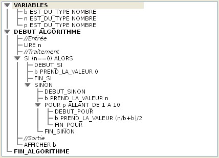 Variables utilisées b (longueur) n (nombre dont on veut la racine) p (compteur pour la boucle) Entrée Saisir n Traitement b prend la valeur n Pour p variant de 1 à 10 faire :