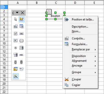 Créer un objet Cliquer sur le menu Affichage, Barres d'outils puis dans la liste des barres sur Contrôles de formulaire comme ci-dessous : ![]() La barre des contrôles apparaît. On dessine un objet comme avec un logiciel de dessin : on sélectionne le contrôle dans la barre (le mode passe automatiquement en création), on clique sur la feuille de calcul et en maintenant le bouton de la souris enfoncé, on étend les dimensions de l'objet. En relachant la souris, l'objet est dessiné. Un clic droit sur l'objet ouvre un menu contextuel qui donne accès à certaines options relatives à l'objet : ![]() Lier un évènement d'un objet à une procédure Cliquer dans ce menu contextuel sur Contrôle, on obtient alors la boîte de dialogue Propriétés : Bouton ci-dessous. ![]() Le premier onglet Général, permet de modifier entre autres, le Nom de l'objet et l’Etiquette (libellé), le deuxième onglet permet d'associer un évènement de l'objet à une procédure. Par exemple pour exécuter une procédure à chaque clic sur un bouton il faut sélectionner le deuxième onglet Évènements, on obtient la fenêtre suivante : ![]() Dans cet onglet, cliquer sur le bouton de suite ![]() Dans cette boîte de dialogue intermédiaire (qui permet de gérer les « actions assignés »), cliquer sur le bouton Macro : la liste des procédures enregistrées ou écrites s’affiche (éventuellement vide). Il suffit de choisir la procédure voulue dans le dossier de la procédure du classeur ou dans le dossier des macros personnelles pour l’associer au bouton. |