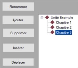 La page de décors La page de décors fournie (DecorsModele.htm) doit être adaptée pour cette nouvelle unité d'information (voir le document décrivant la page de décors). Il faut aussi renommer ce fichier en gardant "decors" dans le nom pour la nouvelle unité (par exemple : UnitDecors.htm ou DecorsUnit.htm ou encore NewDecorsUnit etc.) Le sommaire Il faut maintenant créé le sommaire. A ce stade, il n'y a que la racine qui existe (Nouvelle unité d'information), Elle est en principe sélectionnée, sinon cliquer dessus. À gauche, 5 boutons permettent de gérer le sommaire. Quand la racine du sommaire est sélectionnée, seuls deux boutons sont actifs : Renommer et Ajouter. Commencer par renommer la racine du sommaire pour indiquer le contenu de cette nouvelle unité d'information en cliquant sur le bouton Renommer. Un champ s'affiche pour taper le nouveau nom. La racine du sommaire n'apparaîtra pas dans le sommaire des pages Html mais peut apparaître dans le titre des premières pages Html (voir les types de sommaire possibles), il faut donc qu'il soit parlant. Le bouton Renommer s'est transformar en bouton Valider. Cliquer dessus pour finir. Maintenant que la racine est renommée et toujours sélectionnée, cliquer sur le bouton Ajouter.. Un nouvel élément du sommaire (nommée Feuille0) apparaît : ![]() La racine étant toujours sélectionnée, on peut ajouter plusieurs éléments en cliquant plusieurs fois sur le bouton Ajouter. On peut ensuite renommer chaque élément (ici en Chapitre 1, Chapitre 2, Chapitre 3), obtient ainsi le sommaire suivant : ![]() Mais on peut aussi ajouter des feuilles à des éléments déjà créés, par exemple : ![]() On obtient ainsi 2 niveaux (la racine n'est pas affichée dans le sommaire des pages Html) :