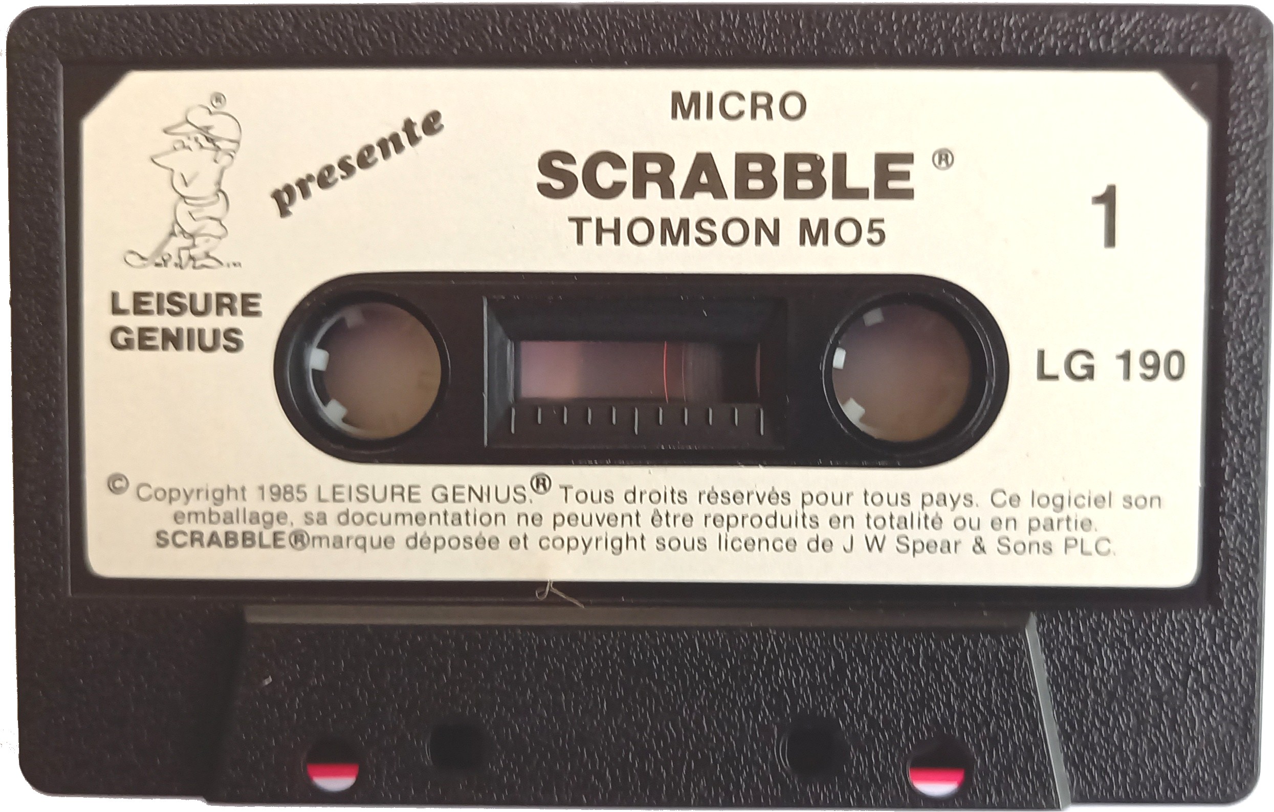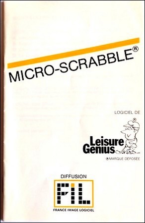 Micro-Scrabble pour Thomson TO7-70 et MO5 Ce jeu est un logiciel de Leisure Genius (marque déposée de Winchester Holding basée à Londres en Angleterre) diffusé par FIL en 1985. Il reprend les règles du Scrabble (marque déposée et copyright sous licence de J W Spear & Sons PLC. Micro-Scrabble est un logiciel sophistiqué qui permet de jouer seul ou à plusieurs au SCRABBLE en utilisant un micro-ordinateur. Le programme peut simuler de 1 à 4 joueurs. Chaque joueur pouvant jouer à un des 4 niveaux de difficulté de la machine.