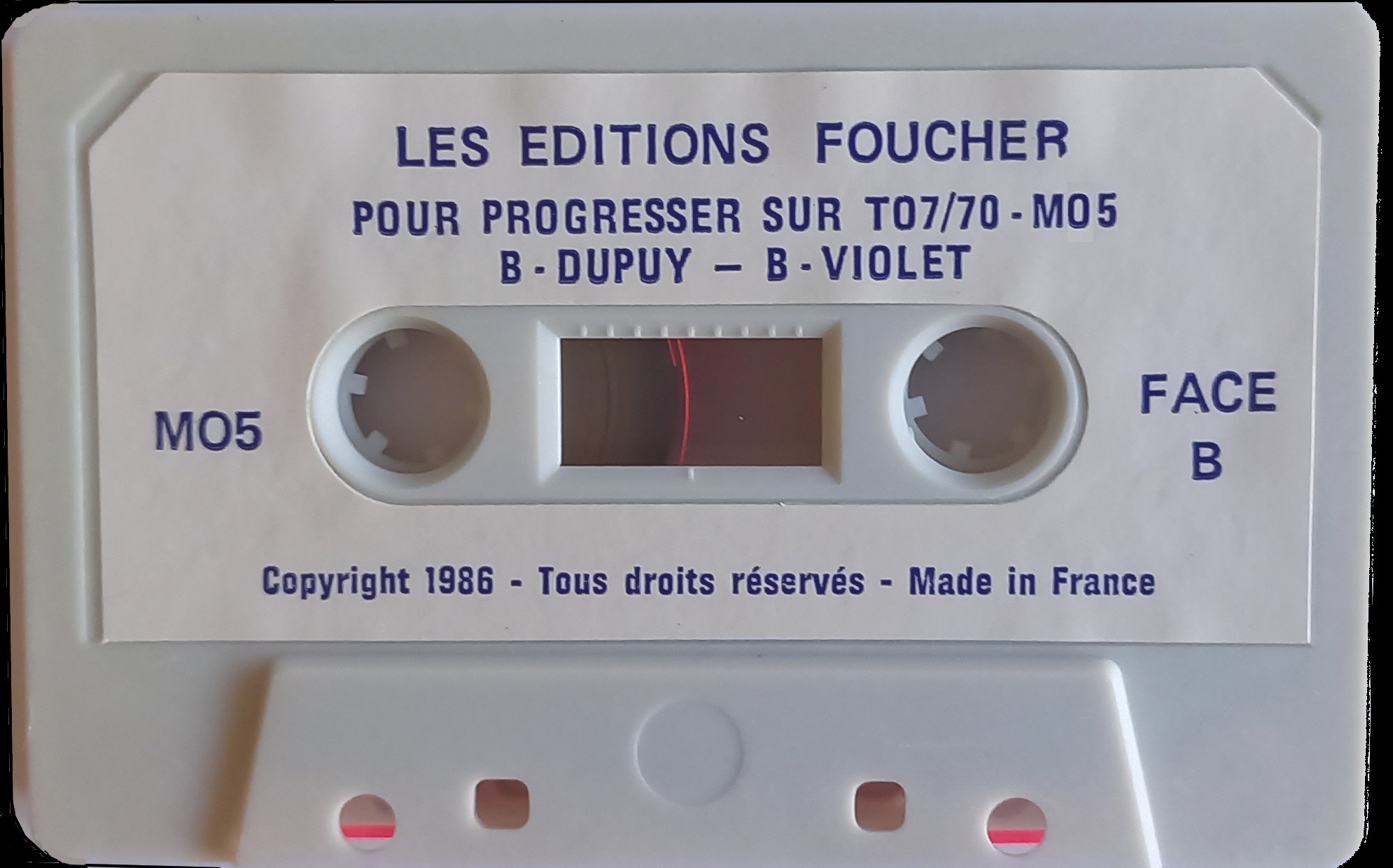 Pour Progresser sur TO7 - MO5 Jeux et Exploration Scientifique à partir de 13 ans. Le livre « Progresser sur TO7 - MO5 » est paru le 1er Janvier 1986 avec un ensemble de logiciels éducatifs pour accompagner le livre. Ces logiciels sont enregistrés sur une cassette (une face TO7, une face MO5) et vendus dans un boîtier.