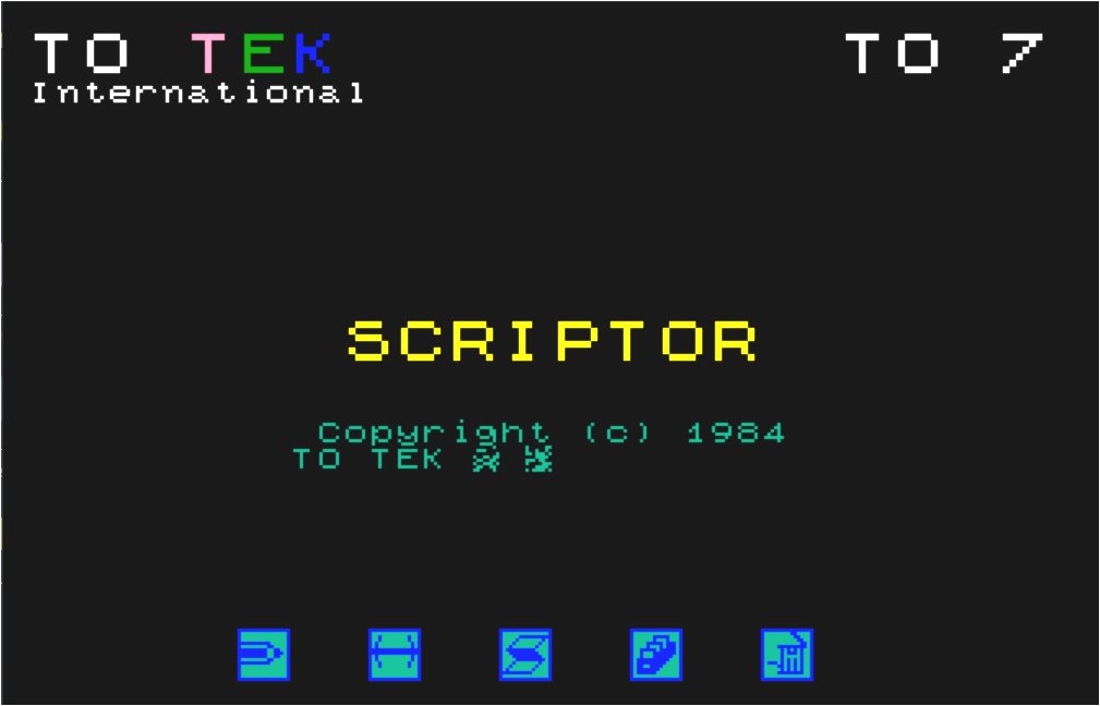 Scriptor C'est un logiciel de traitement de texte qui permet de taper et de composer facilement et rapidement des textes, des lettres, des rapports, ... Il a été édité par FIL - THOMSON / Cedic - Nathan en 1984, diffusé par TO TEK international.. IL est fourni sur cartouche Thomson avec un manuel (tout en blanc) conséquent divisé en quatre parties principales :