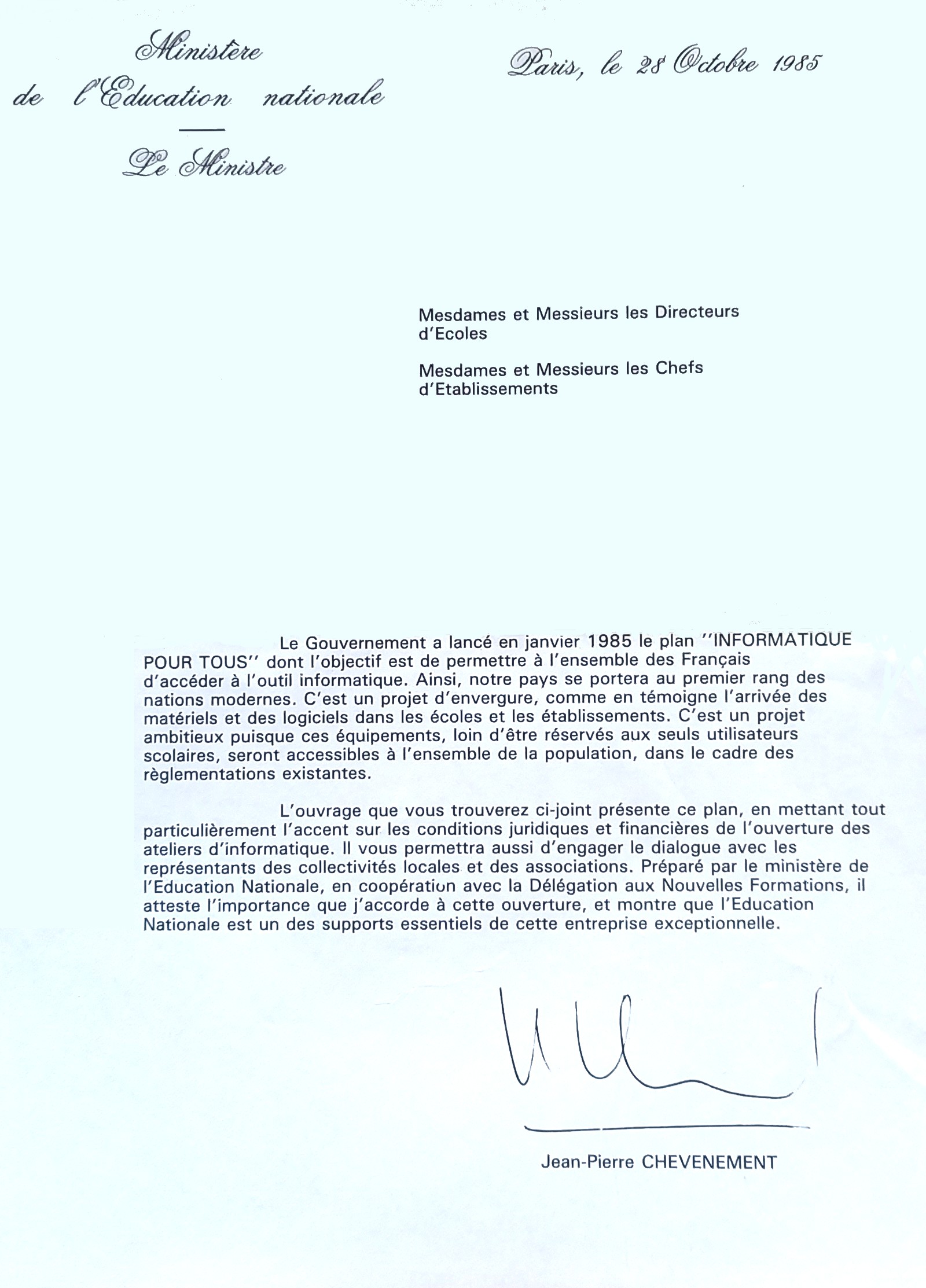 Livres d'accompagnement En 1985 pendant la phase d'équipemnt des établissements scolaires deux livres ont été édités par le ministère de l'Education Nationale et le CNDP :