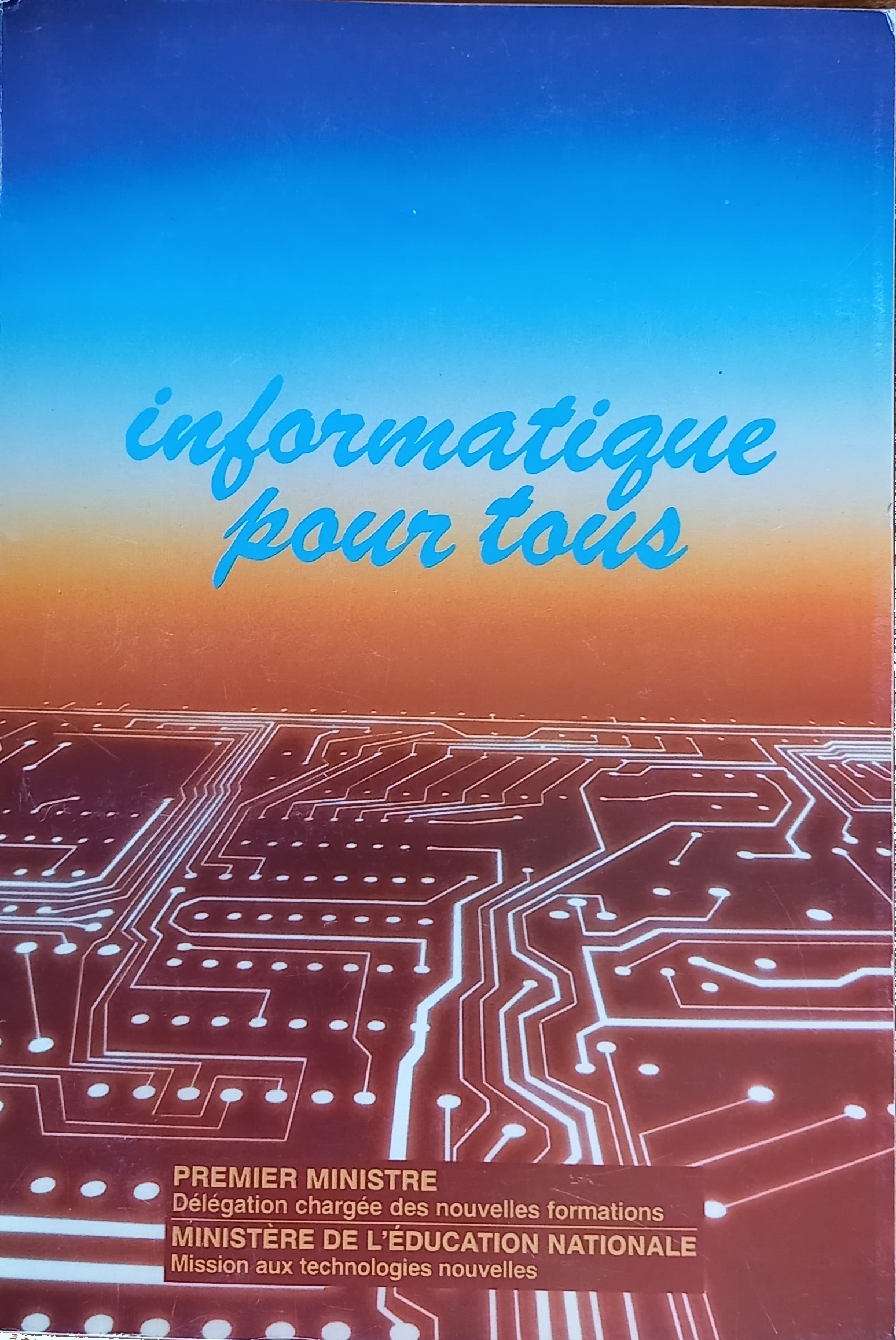 Ce livre présente le plan « Informatique pour tous », le matériel, donne des notions sur les différents composants d'un ordinateur, les langages, les logiciels, des exemples d'activités, des conseils pratiques pour le matériel. En fin de livre, on trouvera un paragraphe sur "Informatique et liberté", un catalogue des logiciels disponibles par type de machine avec le niveau scolaire et l'éditeur puis un lexique de termes informatiques et enfin un guide pour la mise en route des matériels. |